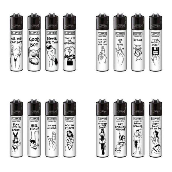De Clipper FFX Adult aanstekers spelen met humor, verleiding en een duidelijke knipoog. Elke aansteker laat een sexy illustratie zien, gecombineerd met een slogan die je niet snel over het hoofd ziet. Denk aan teksten als All You Can Eat, Lick It Good, 3Some en Play With Me Daddy. Deze sets zijn duidelijk bedoeld voor volwassenen wel houden van een randje.