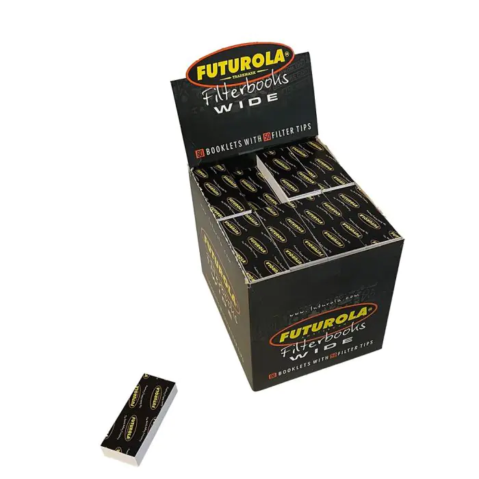 De Futurola Brede Filtertips zijn stevige, brede papieren tips die goed passen bij kingsize vloei. Gemaakt van FSC-gecertificeerd papier en verkrijgbaar per los boekje of als doos met 80 stuks.