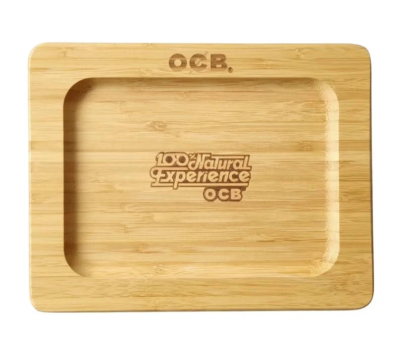 OCB Bamboo Rolling Tray Medium van massief bamboe (23 x 18 cm) met opstaande rand. Praktisch formaat voor vloei, filtertips en accessoires.