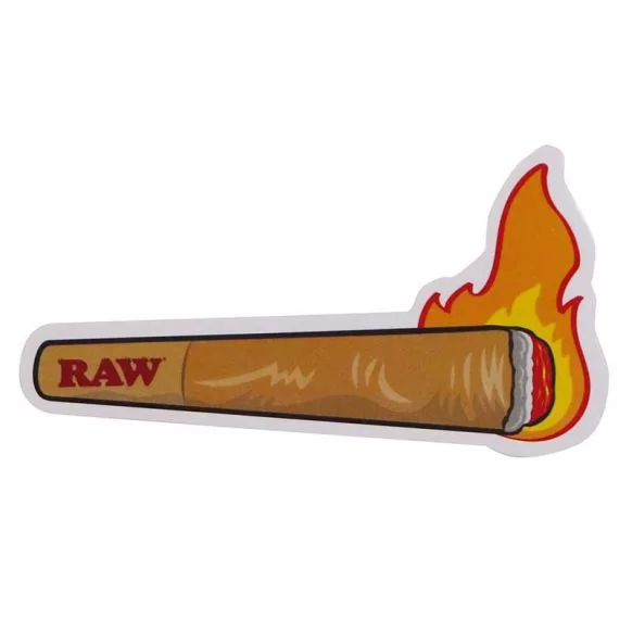 RAW sticker in de vorm van een brandende cone. Herkenbaar RAW design en leuk om te plakken op je tray, deur of laptop.