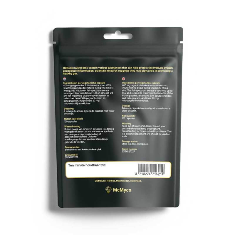 • Samenstelling: Mix van bètaglucanen, polysachariden en natuurlijke shiitake-componenten